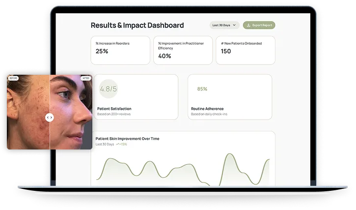 A complete AI-Powered solution to guide clients through acne recovery built around personalized routines, automated product recommendations, and real-time progress tracking.